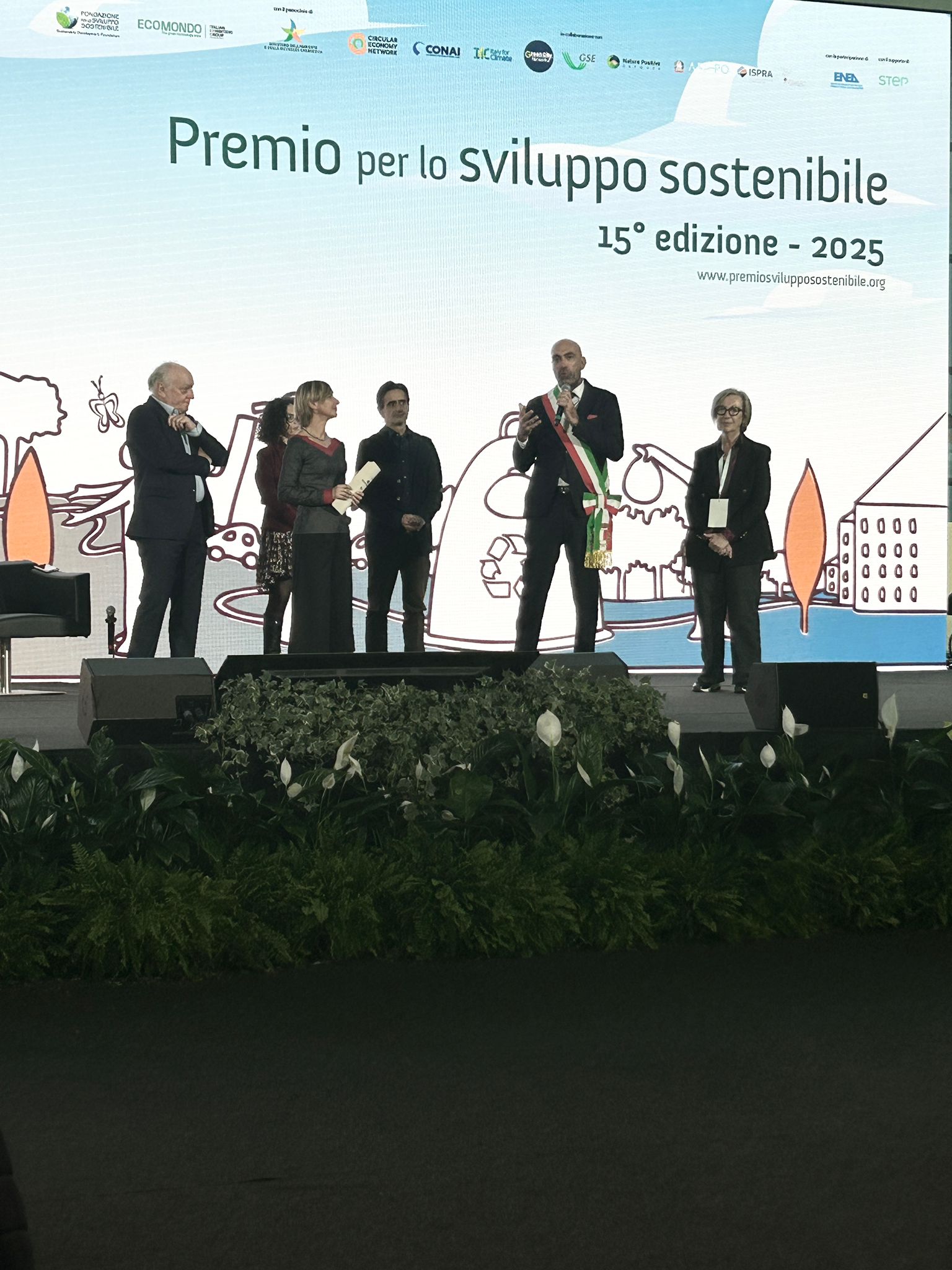 In questo contesto si inserisce l’evento organizzato dalla Fondazione per lo sviluppo sostenibile, presieduta da Edo Ronchi, che premia ogni anno 10 eccellenze tra i progetti che hanno aderito alla call. Bari è tra le dieci città italiane premiate (non esiste graduatoria, sono tutte sullo stesso piano ad eccezione della prima) nel settore “ripristino della Natura”: questo pomeriggio il sindaco e l’assessora hanno ritirato il riconoscimento assegnato dalla Commissione per il “Premio sviluppo sostenibile 2025 ”, promosso da Fondazione per lo Sviluppo sostenibile e “Italian Exhibition Group – Ecomondo, Quartiere Fieristico di Rimini”, con il Patrocinio del MASE.